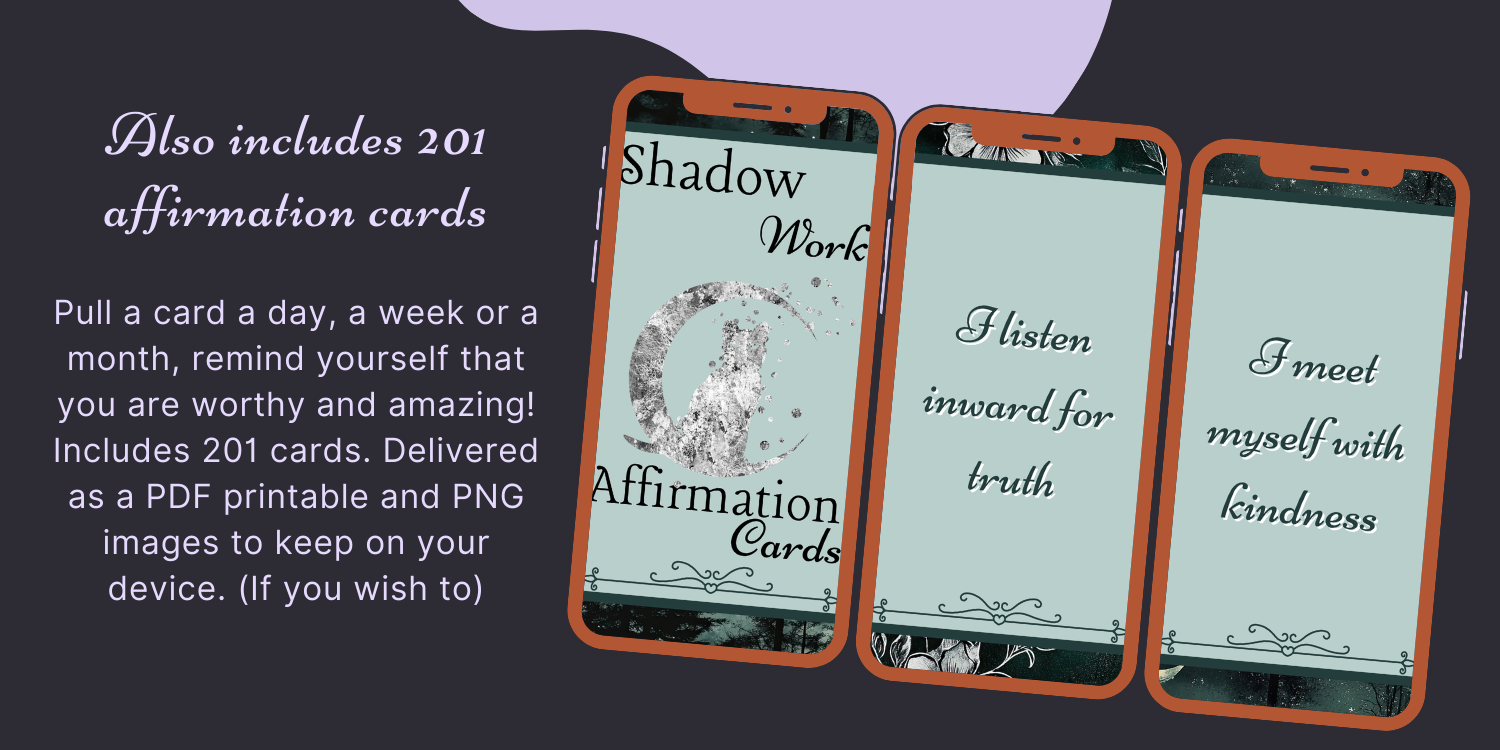Shadow Work Workbook (61 Pages) + Shadow Work Affirmation Cards (201 Cards)